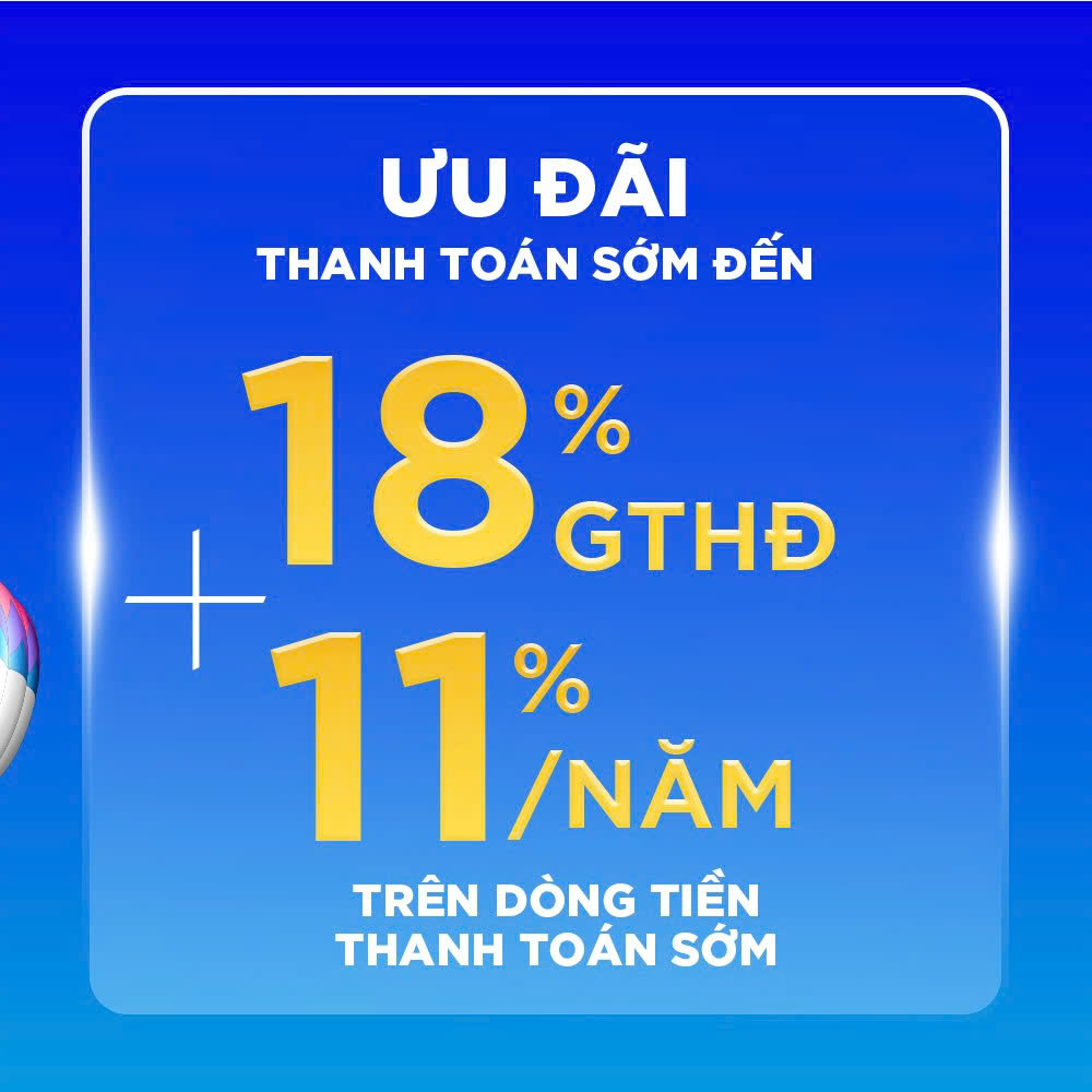 - Nhận ưu đãi thêm trên dòng tiền thanh toán sớm với lãi suất 11%/ năm.