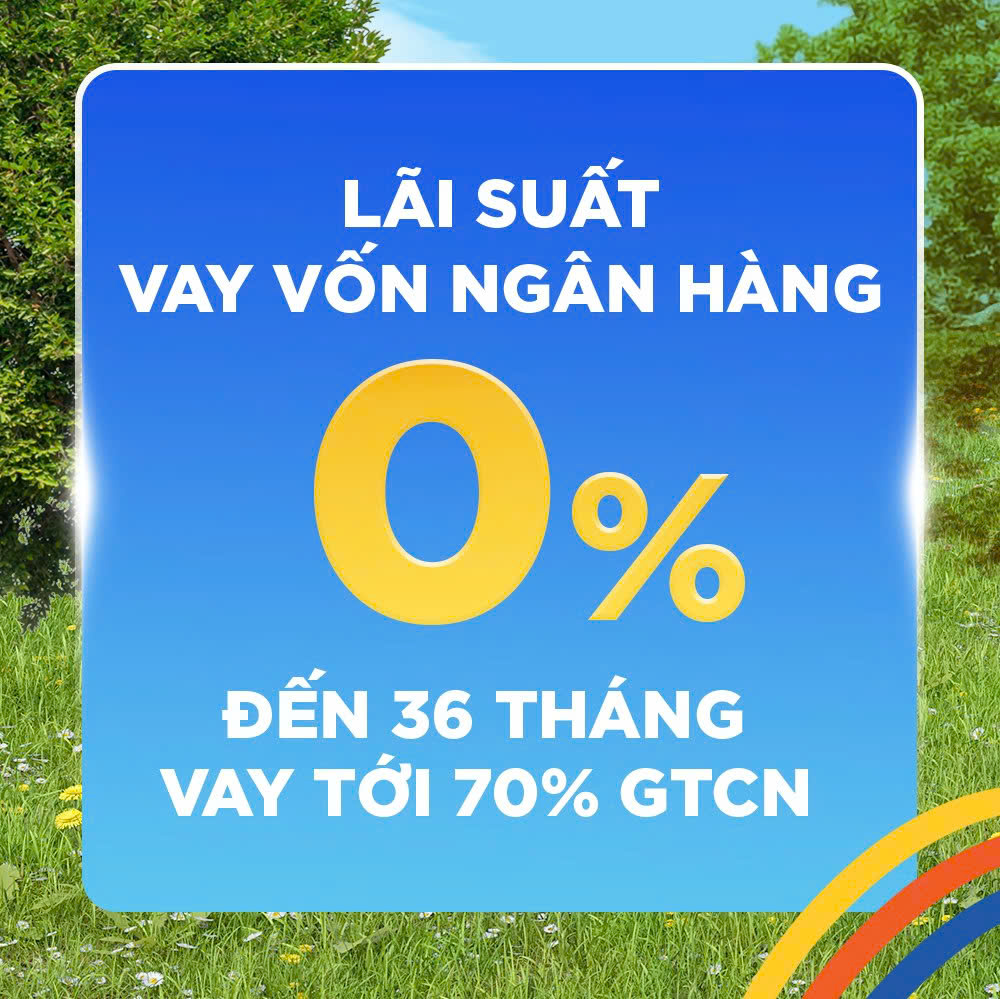 - Hoặc hưởng thêm ưu đãi 8% vào tổng giá gốc khi vay 70% với lãi suất 0% tối đa đến 24 tháng, không muộn hơn 25/09/2026.